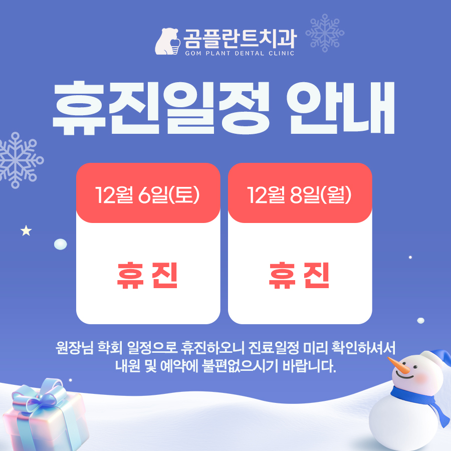 12월 6일, 8일 휴진 안내입니다!
